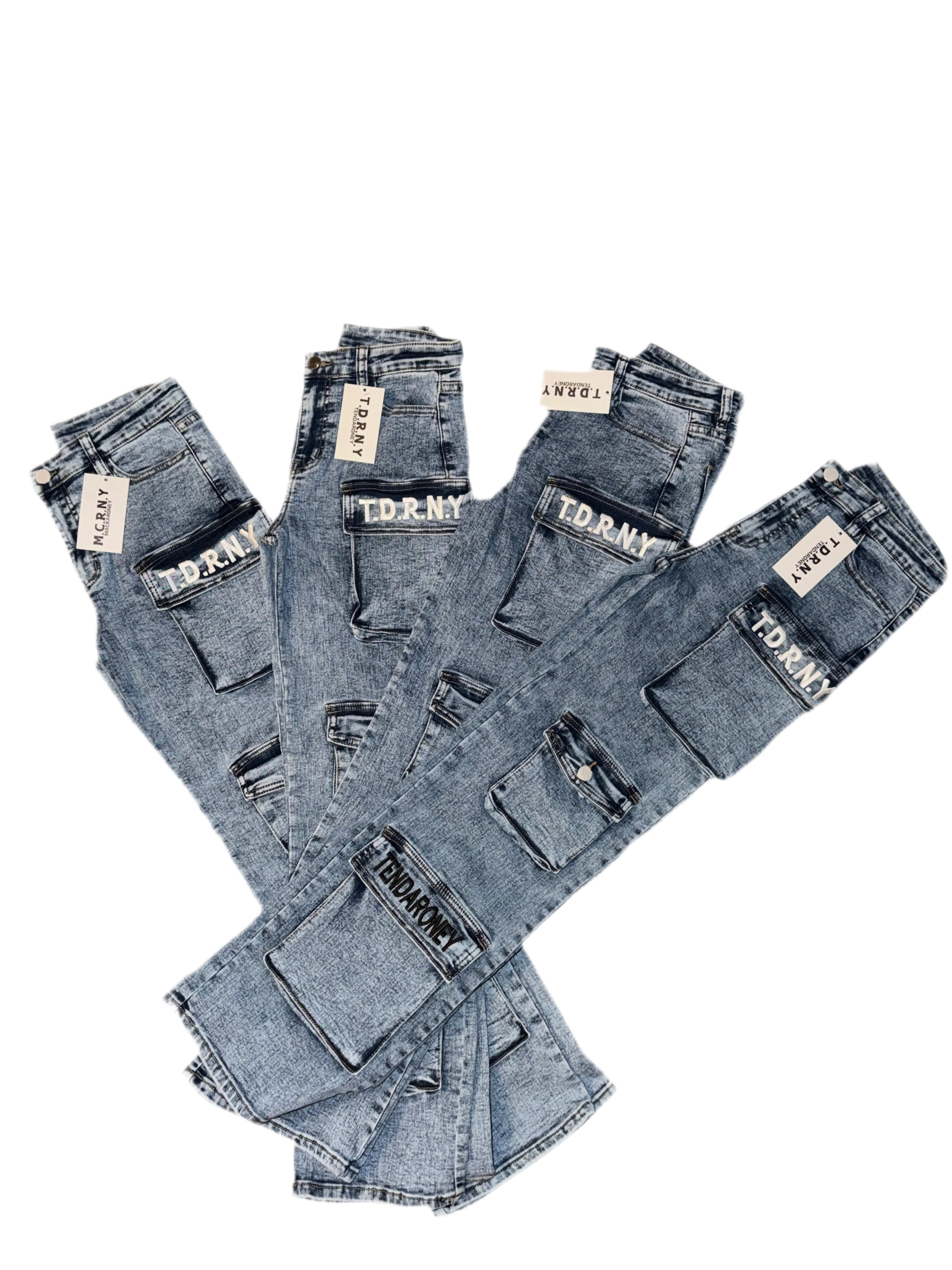 Purpose-built cargo denim crafted from durable medium-wash denim. Designed with multi-cargo pocket detailing and embroidered T.D.R.N.Y and TENDARONEY branding for a bold yet refined streetwear look. Finished with reinforced stitching for long-lasting wear.