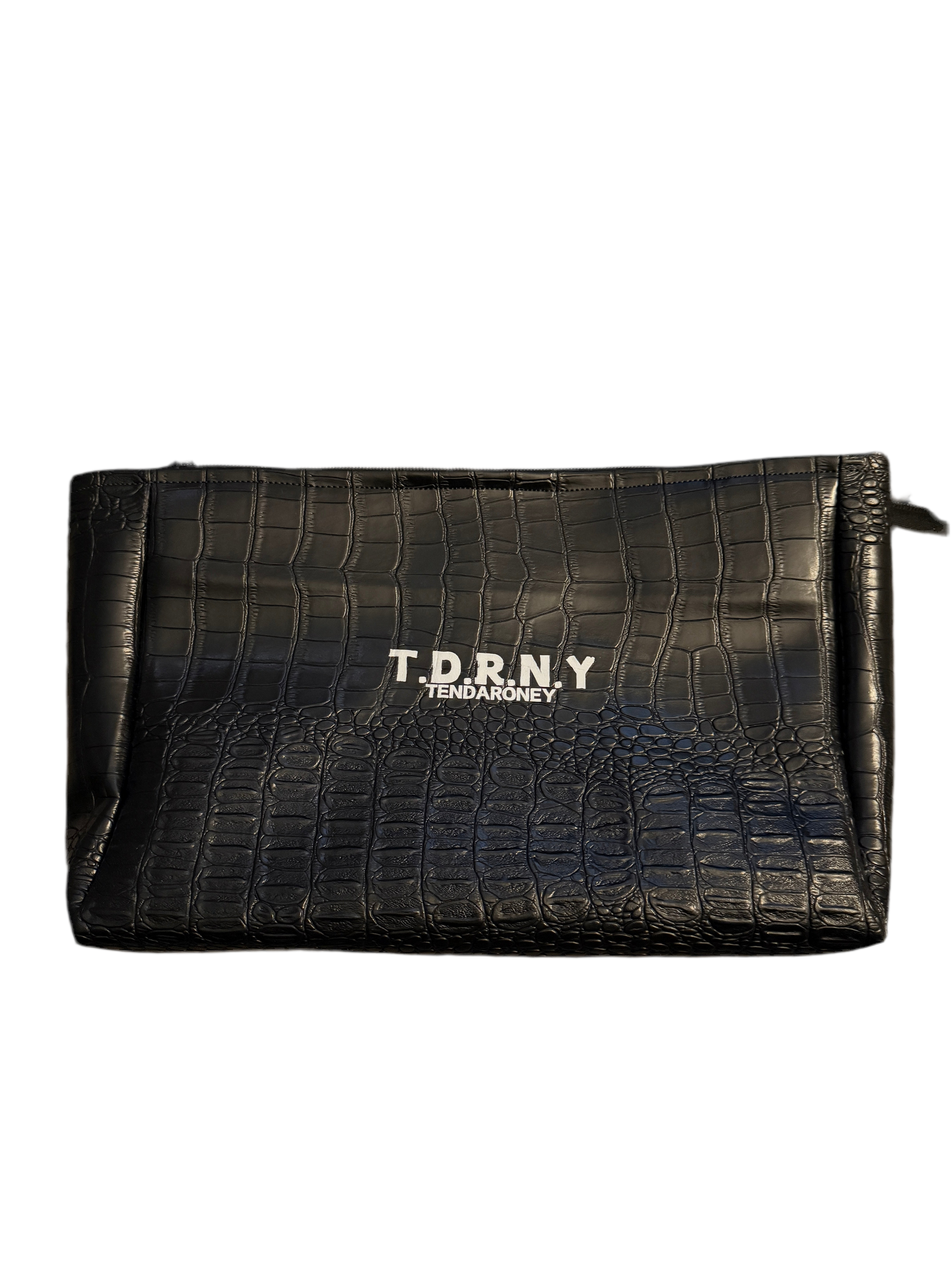 - Details: Branded T.D.R.N.Y leather patch, zip-top closure